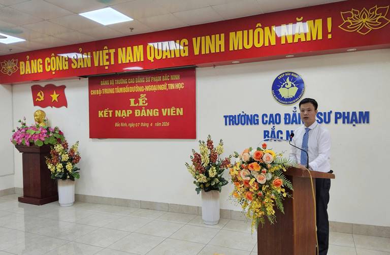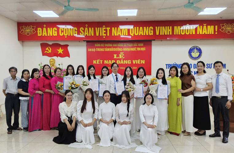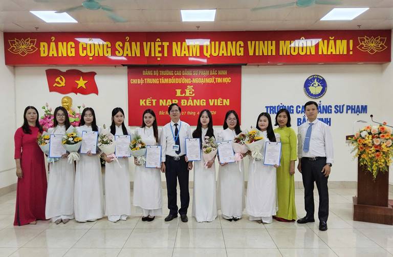 Căn cứ Điều lệ Đảng Cộng sản Việt Nam; thực hiện Nghị quyết của Đảng ủy Trường CĐSP Bắc Ninh về công tác phát triển đảng viên và Quyết định kết nạp đảng viên của Đảng ủy cấp trên, ngày 07/4/2026, tại phòng 704H, Chi bộ Trung tâm Bồi dưỡng - Ngoại ngữ, Tin học đã trang trọng tổ chức Lễ kết nạp đảng viên mới cho 07 quần chúng ưu tú. Đây là dấu mốc quan trọng, ghi nhận quá trình phấn đấu, rèn luyện và trưởng thành của các quần chúng, gồm: