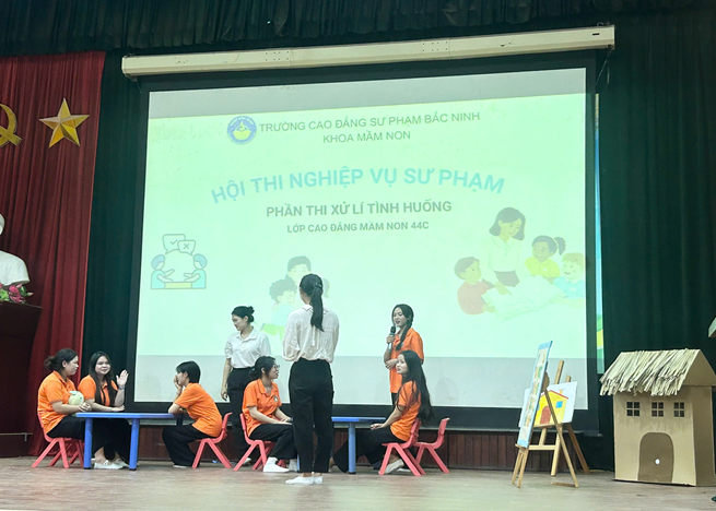 Cuộc thi nhằm rèn luyện bản lĩnh nghề nghiệp, khả năng ứng xử sư phạm và kỹ năng xử lý các tình huống thực tế trong công tác chăm sóc - giáo dục trẻ. Đây cũng là sân chơi bổ ích, giúp sinh viên vận dụng kiến thức lý luận vào thực hành, đồng thời thể hiện tinh thần sáng tạo, tự tin và yêu nghề.