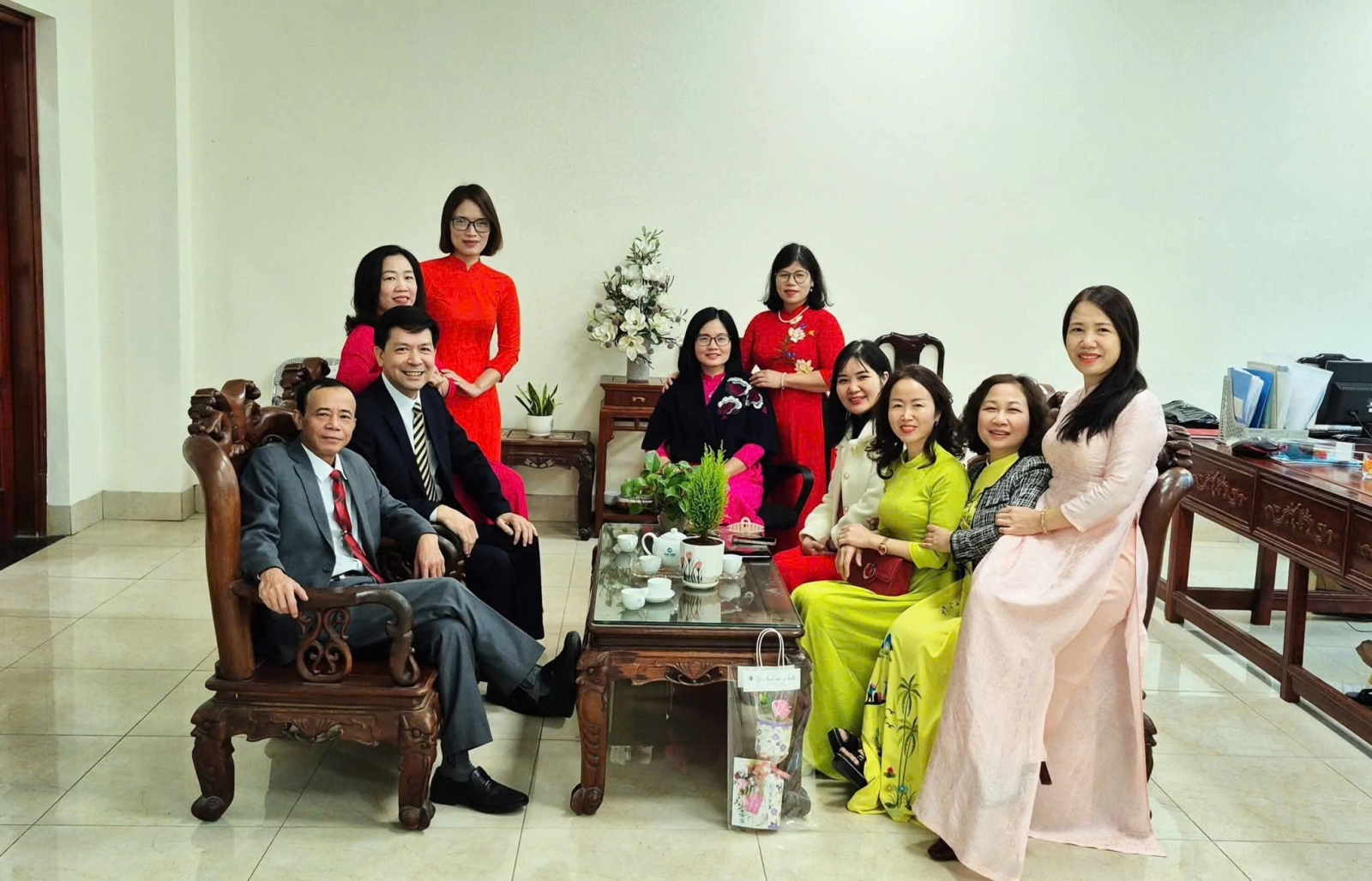 Kết thúc chương trình, đại biểu và các thầy cô đã cùng dự liên hoan thân mật tại Nhà Đa năng. Những câu chuyện nghề được sẻ chia trong không khí ấm áp đã thắp lên niềm tự hào, tiếp thêm động lực cho các thế hệ nhà giáo.