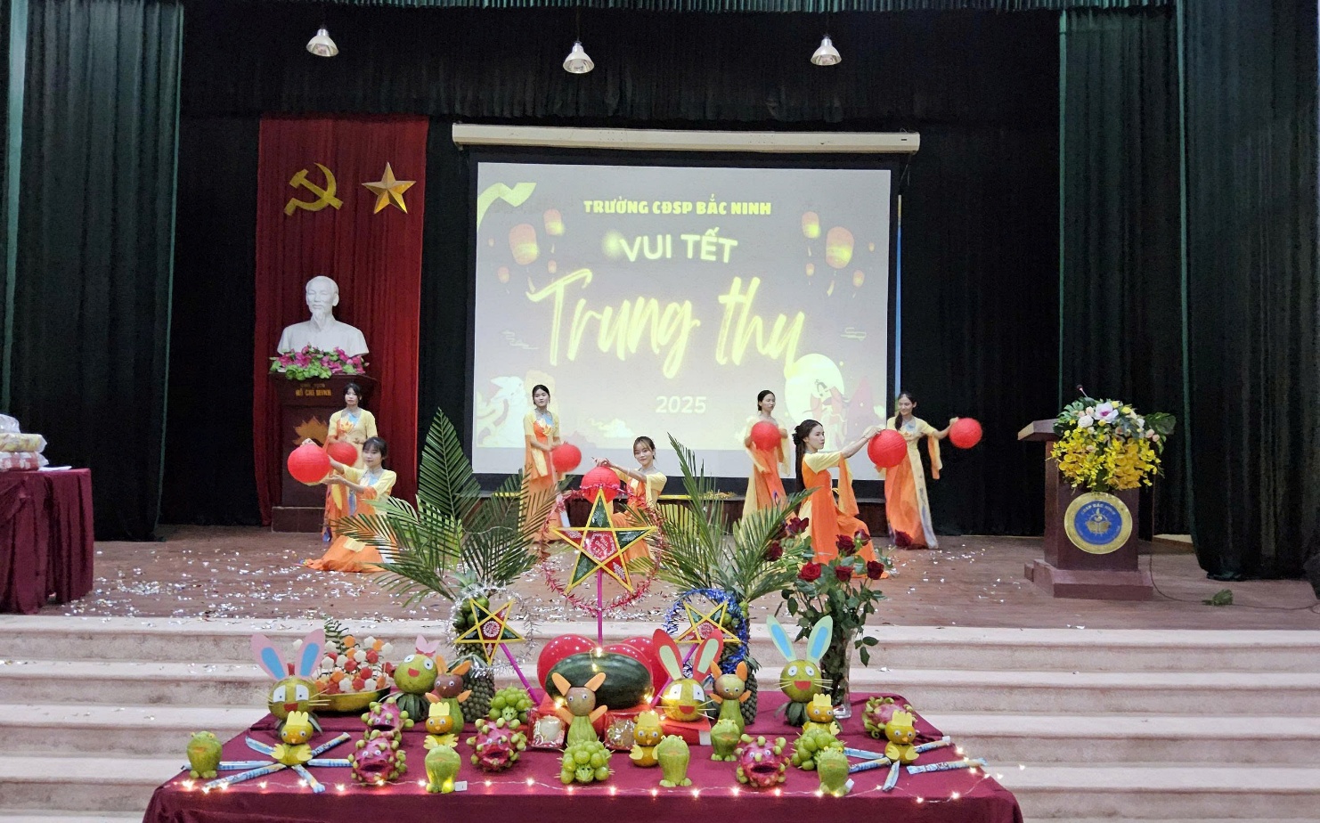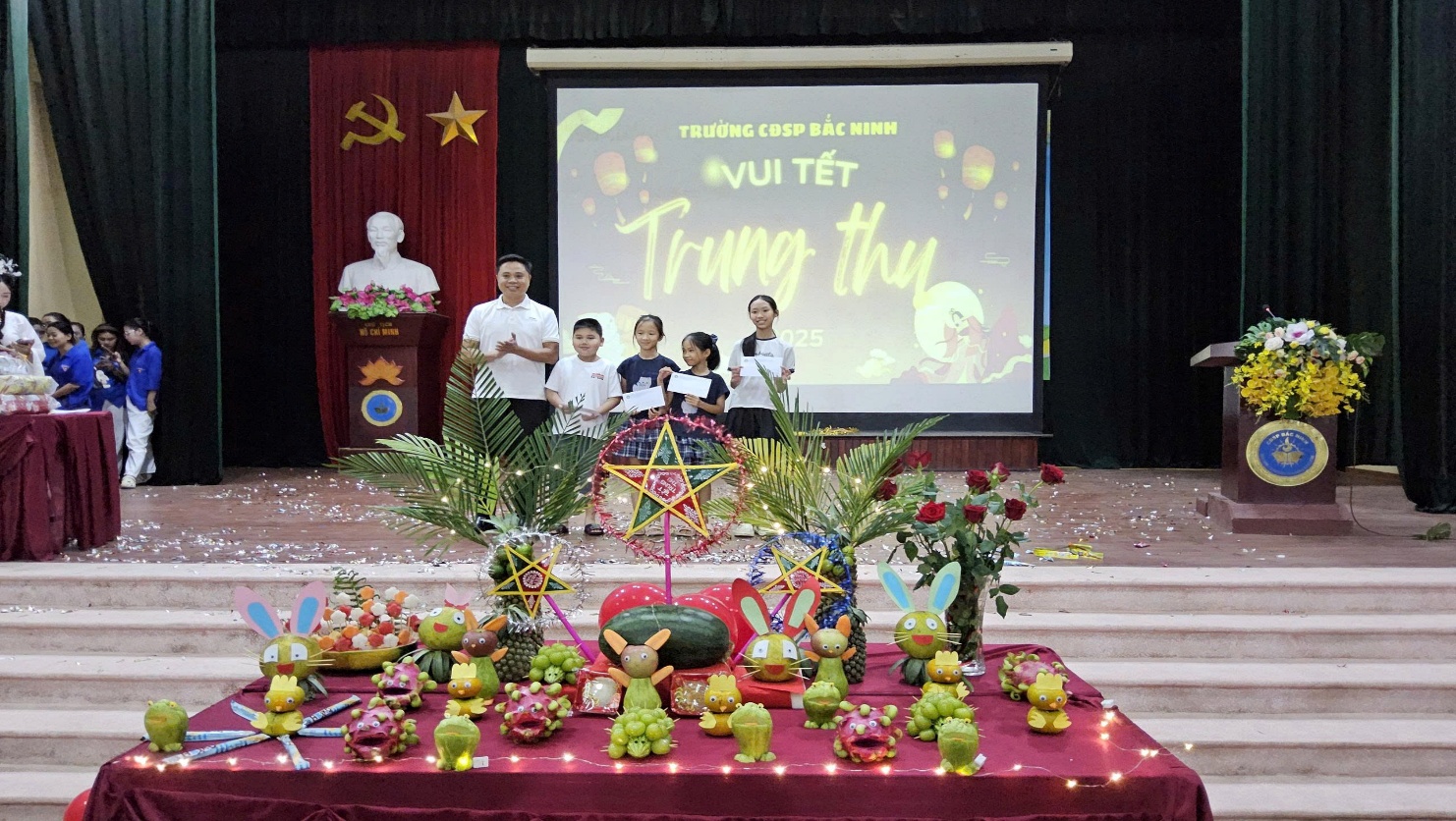 Thực hiện Kế hoạch số 252/KH-CĐSP ngày 24/9/2025 của Trường Cao đẳng Sư phạm (CĐSP) Bắc Ninh về việc tổ chức Chương trình Tết Trung thu năm 2025 cho các cháu thiếu nhi là con, cháu viên chức, người lao động trong Trường; Căn cứ Nghị quyết Hội nghị viên chức, người lao động và Chương trình hoạt động năm học 2025 - 2026 của Ban Chấp hành Công đoàn Trường CĐSP Bắc Ninh, tối ngày 01/10/2025 (tức 10/8 Âm lịch) tại Nhà đa năng, Trường CĐSP Bắc Ninh đã tổ chức chương trình “Vui Tết Trung thu” cho các cháu thiếu nhi là con, cháu viên chức, người lao động trong Trường.