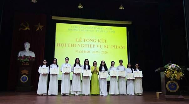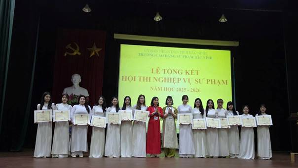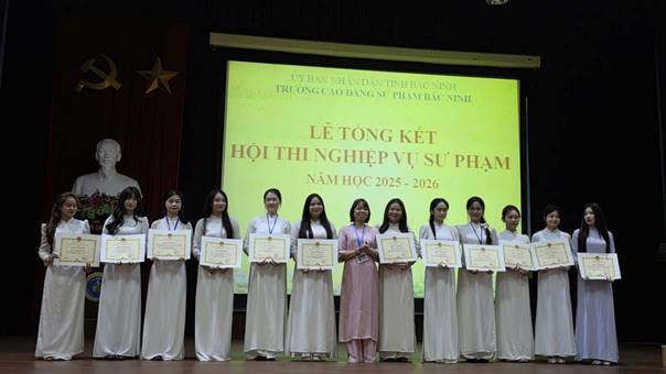 Sáng ngày 17/4/2026, tại nhà Đa năng - Trường CĐSP Bắc Ninh, Khoa Mầm non tổ chức tổng kết Hội thi Nghiệp vụ sư phạm (NVSP) nhằm đánh giá toàn diện kết quả của hội thi NVSP năm học 2025 - 2026, đồng thời ghi nhận, biểu dương những thành tích tiêu biểu của các tập thể lớp và sinh viên trong quá trình rèn luyện nghiệp vụ.