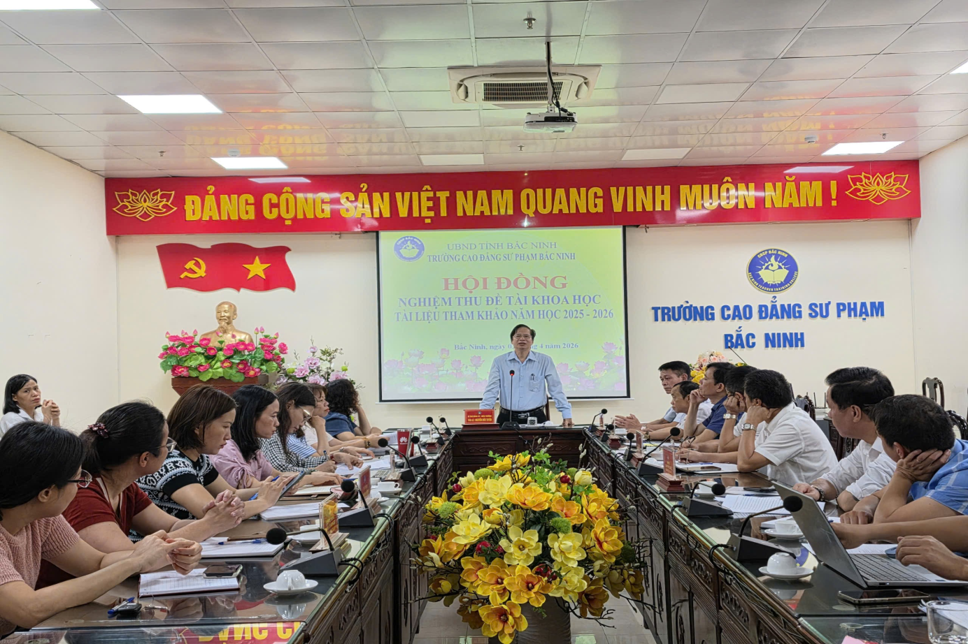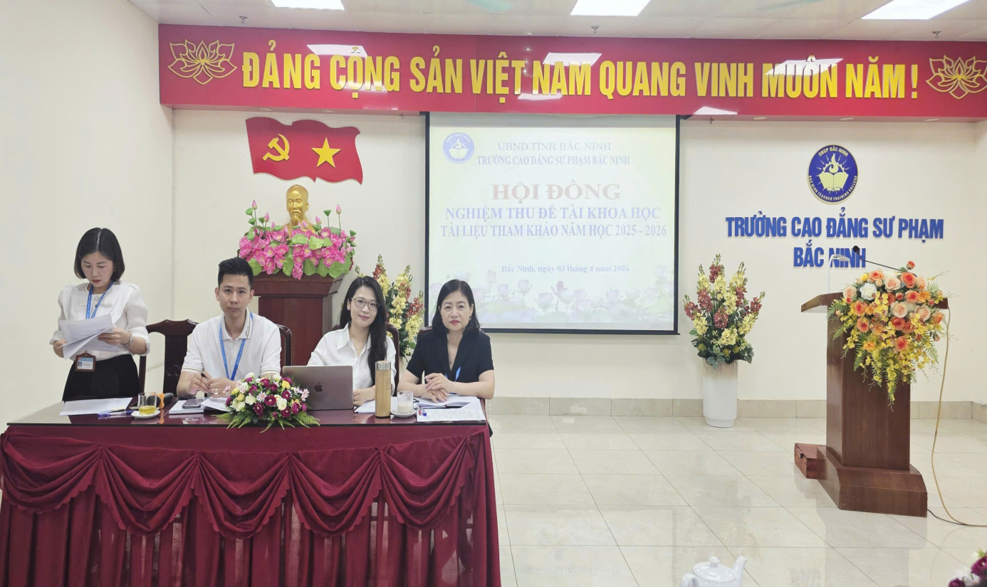 Thực hiện Kế hoạch số 146/KH-CĐSPBN ngày 11/3/2026 về việc nghiệm thu sản phẩm khoa học năm học 2025-2026, ngày 03/4/2026, Trường Cao đẳng Sư phạm Bắc Ninh tổ chức nghiệm thu các đề tài nghiên cứu khoa học và tài liệu tham khảo cấp cơ sở của giảng viên.